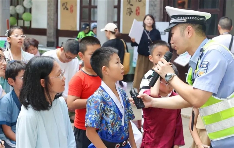 不知道你是否听过翁洲走书,这是一种用舟山方言说唱的曲艺表演,也是我们舟山的非物质文化遗产。而这次,翁洲走书团队巧妙地将“交通安全”这一现代主题融入其中,“说安全来唱安全,平安出行第一条……”小记者们跟随着翁洲走书老师绘声绘色地学唱着。在悠扬动听的歌声中,这次表演不仅传递了交通安全的重要信息,更为传统文化披上了华彩外衣。