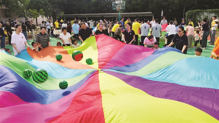 昨天上午,南海实验幼儿园第六届秋季运动会开幕。本次运动会以“悦动金秋 童梦飞扬”为主题,开展了推小车、运大葱、抢丰收等诸多结合了秋收元素的趣味运动,让孩子们收获快乐。
