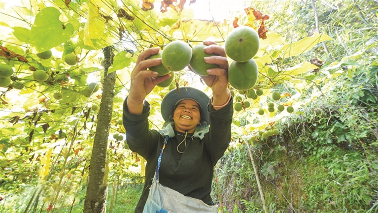 时下,贵州省黔东南苗族侗族自治州榕江县种植的罗汉果迎来丰收季。近年来,榕江县采取“党支部+合作社+农户”的模式,因地制宜发展罗汉果产业,带动当地农民增收。 据人民网