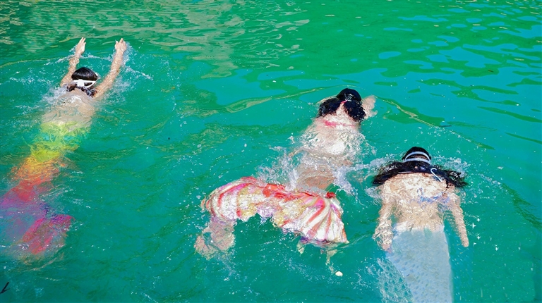 秋日的阳光下,普陀白沙岛的海岸线显得格外迷人,海风轻拂,波光粼粼。在这片美丽的海域旁,一场别开生面的“美人鱼”试潜活动正在精彩上演。瞧,3位“美人鱼”宛如海中的精灵,在碧波中轻盈舞动。她们每一次在水中优雅地转身,每一回灵动地摆动鱼尾,都似海中绽放的花朵,引得岸边人群发出阵阵由衷的赞叹。