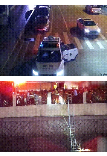 岸上的警民紧紧握住救生绳,齐心协力将张先生拉回岸边,随即又架起救援梯,一人在下面托住他。其他人紧紧抓住张先生的胳膊,将他拉上了岸,送到等候在岸边的救护车上。