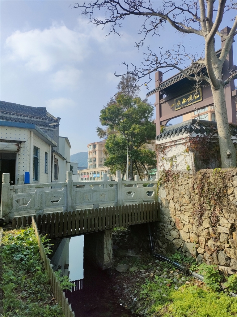 虹桥一侧就是龙潭老街。龙潭老街原为以鱼货交易为主的传统商业街,被称为定海四大老街之一。如今老街上还有龙潭老井以及庄家大院、三角店等老建筑,并已经开辟“去台老兵史料陈列馆”“干石览供销社展览馆”等乡村博物馆,值得一游。