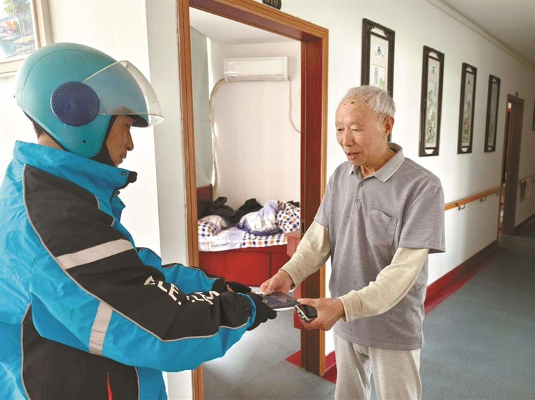 邱光明为老人跑腿