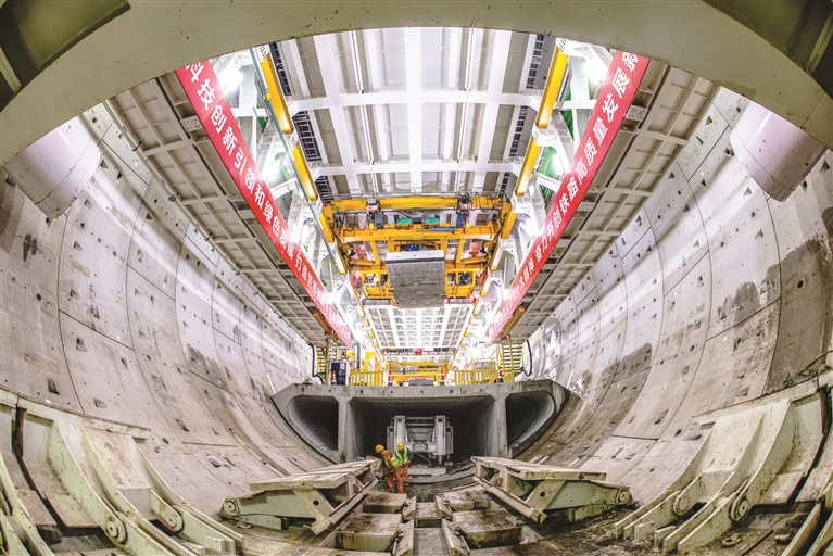 目前,“定海号”盾构机穿越的海堤实现了“零沉降”目标,正以日均16米的速度“穿海而行”,即将突破1000米大关。宁波侧“甬舟号”盾构机已完成陆域段掘进902米,预计明年5月进入海域段施工。