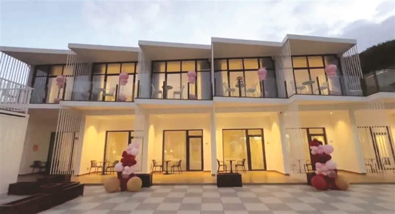 在定海白泉镇米林村有一家名为“觅林·拾年别院”的民宿,以其别致的设计吸引了众多游客的目光。