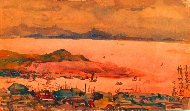 1960年3月,丁正献带学生到舟山来写生时,深入到朱家尖樟州湾、筲箕湾渔村,创作了 “朱家尖筲箕渔村女社员王海娟”“朱家尖樟州湾”“朱家尖渔村一角”等写生粉画。