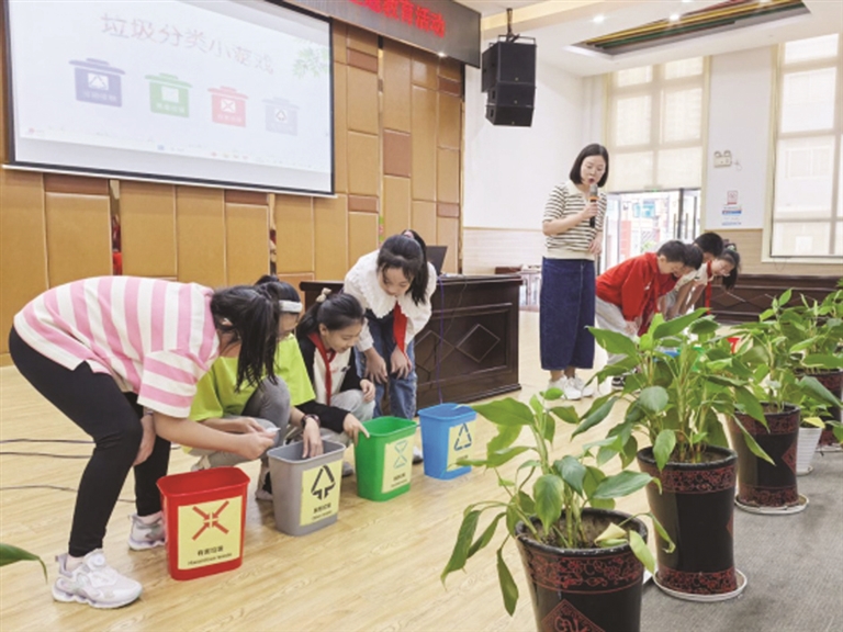 近日,中国少年儿童新闻出版总社舟山办事处工作人员王晓婷走进定海区廷佐小学,为学生们带来了一场精彩的垃圾分类知识讲座。其间进行的“垃圾分类小游戏”,不仅活跃了现场气氛,也让学生在轻松愉快的实践中熟悉了垃圾分类的方法。通讯员 俞佳艳 摄