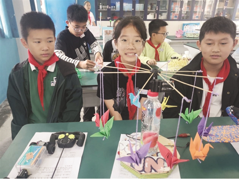 定海区白泉中心小学“畅想金秋”科技劳动现场赛近日拉开帷幕,孩子们在纸飞机挑战、收纳盒制作、马达创意玩具等比赛项目中玩得不亦乐乎。通讯员 沈怡 摄