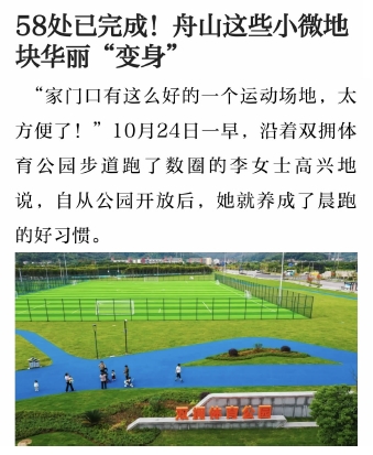 在城市的发展进程中,每一寸土地都承载着人们对美好生活的向往。近年来,我市积极开展道路两侧闲置地块综合利用行动,一系列“小而美”“小而精”的改变悄然发生。定海区盐仓街道的双拥体育公园和新城的郊野公园,它们从曾经的“脏乱差”华丽变身成为居民休闲运动的好去处,生动诠释了“保护不嫌小,改善不嫌微”的城市发展理念,为城市品质提升注入了新活力。