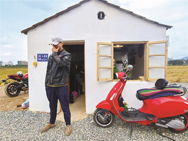 10月28日下午,记者走进了那片稻田,见到了云边小卖部的“创造者”大卫,一位永远在路上的“天涯过客”,他说:“这里是我为自己创造的‘落脚处’。”