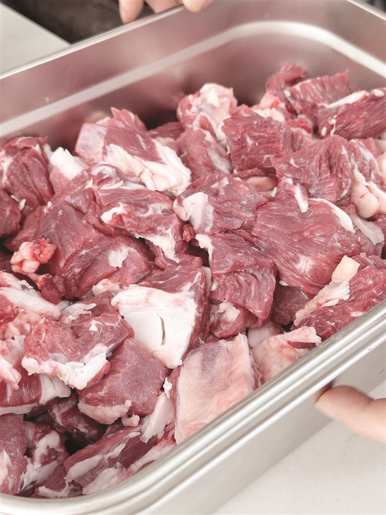 和面条一样当天做当天销的,还有高汤和各种浇头。汤底,用的是老母鸡和筒骨熬的高汤。牛腩、牛杂、牛肉、大排等,都是当天现卤现卖。早上肉店把新鲜的肉送过来,清洗完直接下水焯卤,开启一天的美味。