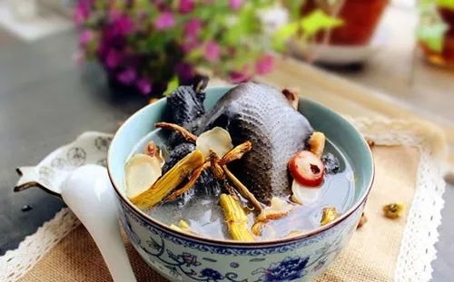配料表:乌鸡1只,石斛15克,花旗参10克,麦冬15克,百合10克,无花果5颗,生姜3片。