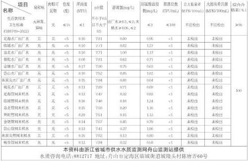 舟山市自来水水质公告