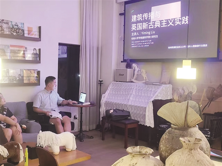 刘依明曾留学英国,学的是建筑学。他说,英国文艺复兴后期的建筑师俱乐部就是这样的沙龙。大家在酒吧聚餐、品酒,分享自己最近设计的项目或最新的考古发现。与书店、咖啡馆不同的是,酒吧的氛围更活跃、更放松,参与者互动更多。他也想在杭州做这样氛围的学术活动,一直没有合适的场所,直到他碰到了明玉。