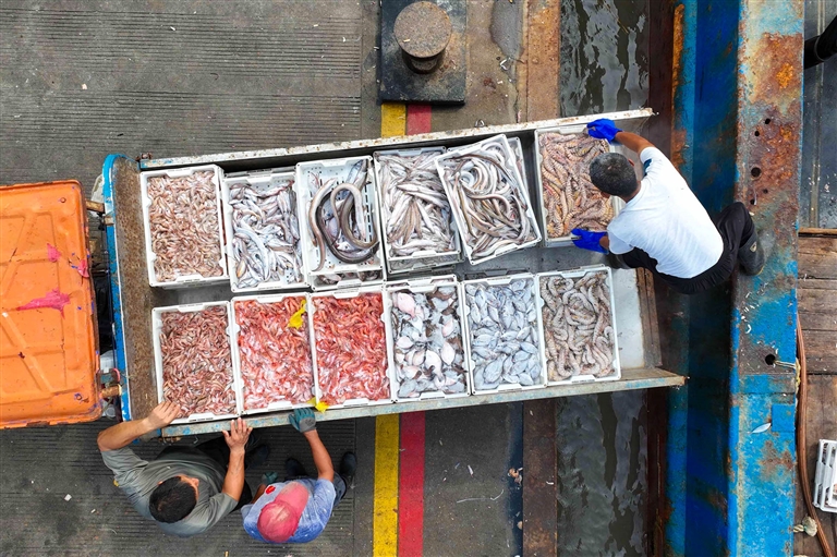 舟山国际水产城码头,各种海鲜上岸