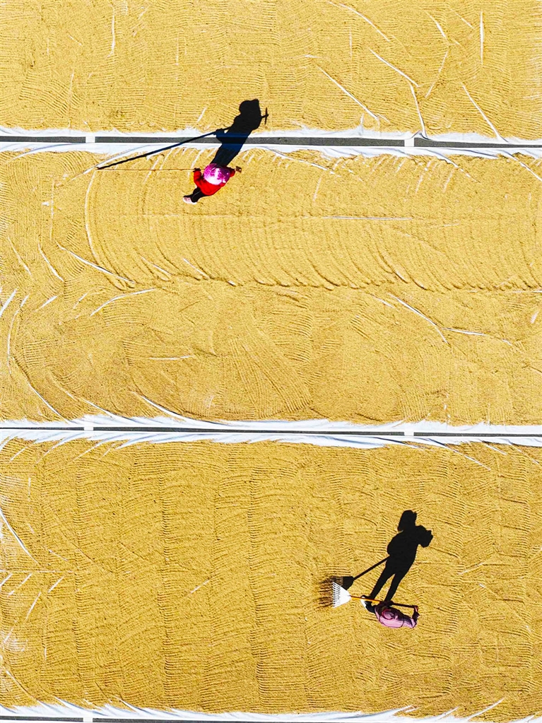 定海区马岙街道马岙村,农户晾晒稻谷