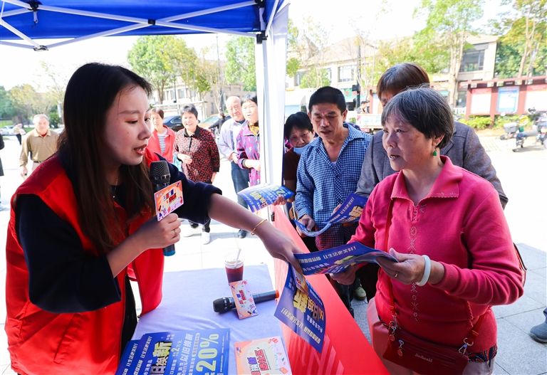昨天,新城红茅山社区,志愿者向社区居民讲解家电、汽车等“以旧换新”政策,促进消费,提升生活品质 记者 张磊 摄