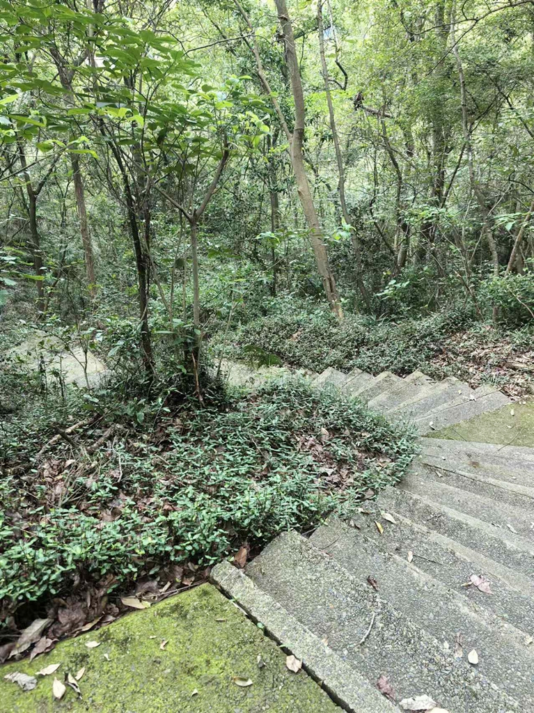 严大爷一边往上走一边回忆道,“别看现在石阶两侧都是杂草,以前很整洁的,郭型尚、丁义两人,每天都会在山道石阶上清扫树枝残叶、修理石阶路面。”
