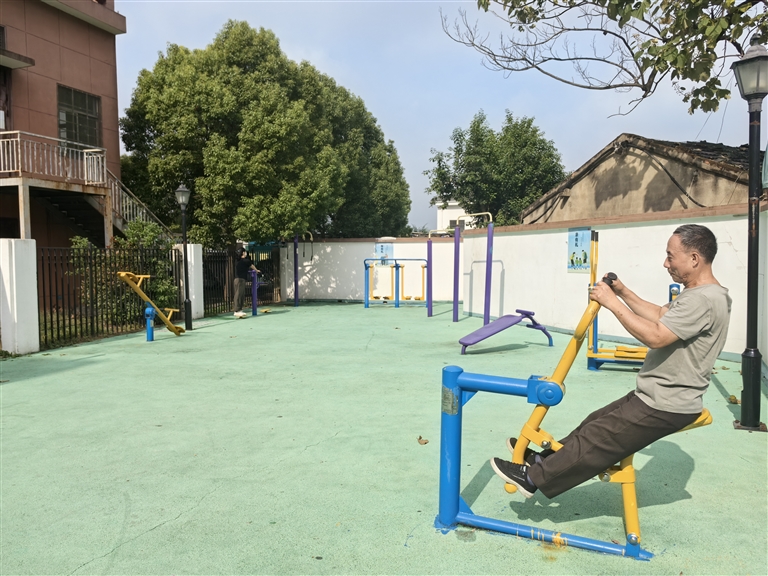 “我是2016年搬进来的,这一片房子是村里拆迁之后新建的。”正在健身的任国忠今年63岁,他告诉记者,这个角落原本垃圾成堆,当地附近也没有公园可以走走、健健身,一开始居民怨气也挺大的。