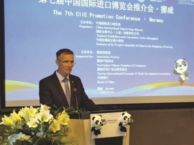 挪威创新署亚洲及中东地区司长奥立希在第七届进博会挪威推介会上致辞 (中国国际进口博览局供图)