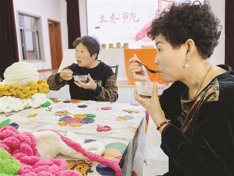今天是立冬。11月5日下午,以“岁至初冬,天地始寒”为主题的立冬节气主题活动在岱山县岱西镇摇星浦村文化礼堂举行,20余名村民共同感受“二十四节气”非物质文化遗产的魅力。活动现场,工作人员向村民们介绍了立冬节气的特点和风俗知识,加深大家对立冬节气的了解,村民们一起做太阳花坐垫,品尝红豆芋汤圆。通讯员 邱双燕 摄