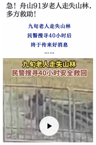 近日,定海小沙一位91岁高龄老人走失,民警搜寻40小时后才在一片山林中找到,幸好老人身体并无大碍(《舟山晚报》11月5日报道)。虽则如此,老人的“智护”问题仍需引起高度重视。