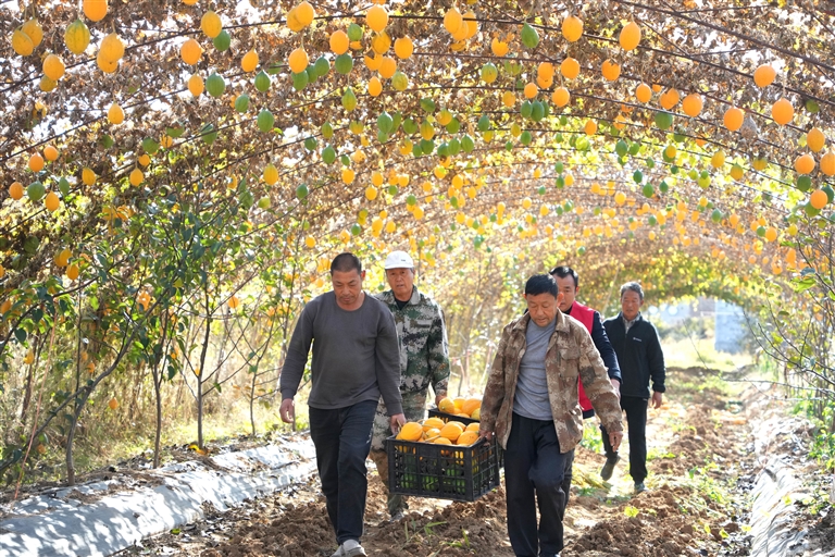 11月5日,在山东省新泰市刘杜镇门家庄村,村民搬运成熟的瓜蒌。