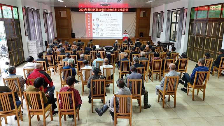 近期,省红十字会急救培训师周通受六横镇政府邀请,到各村社区为老年人讲解如何正确预防脑中风,以及如何进行现场救护。周通还重点讲解了影响脑中风发生的危险因素,比如饮酒过量、吸烟、肥胖、不运动、饮食过甜过咸、压力过大、温差过大以及患有高血压、糖尿病、高血脂等基础性疾病等。到11月5日,周通开课33场,惠及百姓4000多人次。通讯员 刘生国 摄