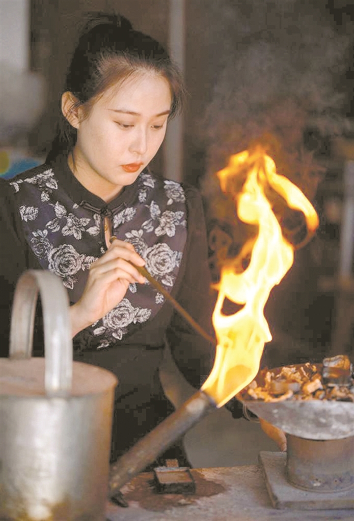浙江女孩传承家业铸造龙泉宝剑