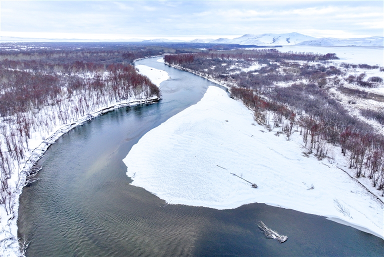 近日,位于内蒙古呼伦贝尔市的额尔古纳湿地迎来降雪。白雪覆盖下,河流蜿蜒流淌,景色如梦如幻。 新华社记者 连振 摄