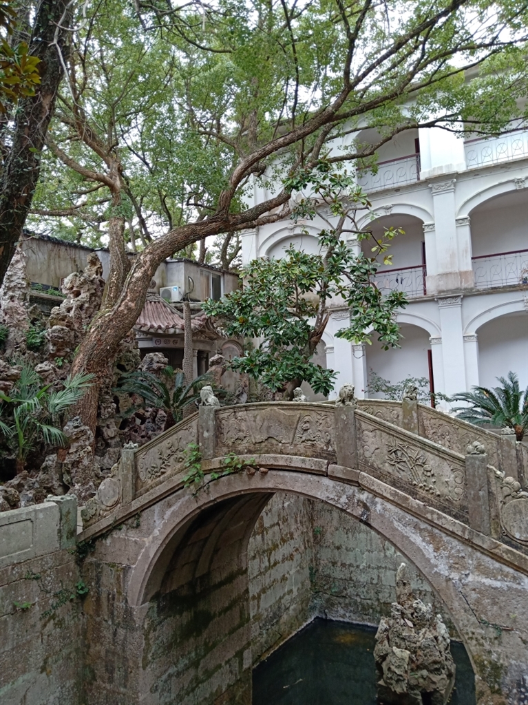 这座民国小桥,就位于普陀山的文昌阁内,小桥没有名字,笔者认为这是一座隐藏于庭院深处的“玲珑桥”。这座融入园林景观的小桥,虽然交通功能弱了一些,但却是一座很有特色的民国石拱桥。