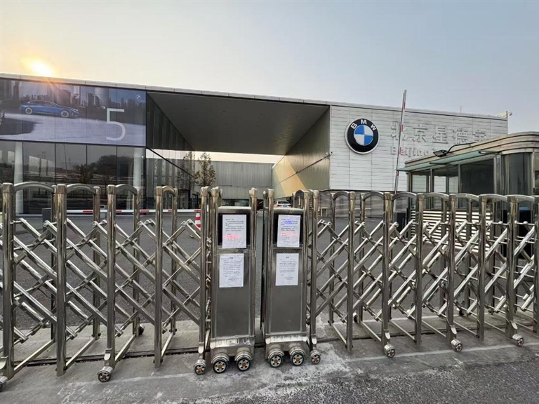 记者日前来到这家位于北京东五环的门店,紧闭的大门外张贴着通知。通知显示,公司目前面临严重资金压力,宝马品牌授权已于2024年10月20日终止,目前公司暂停新车及售后相关业务。