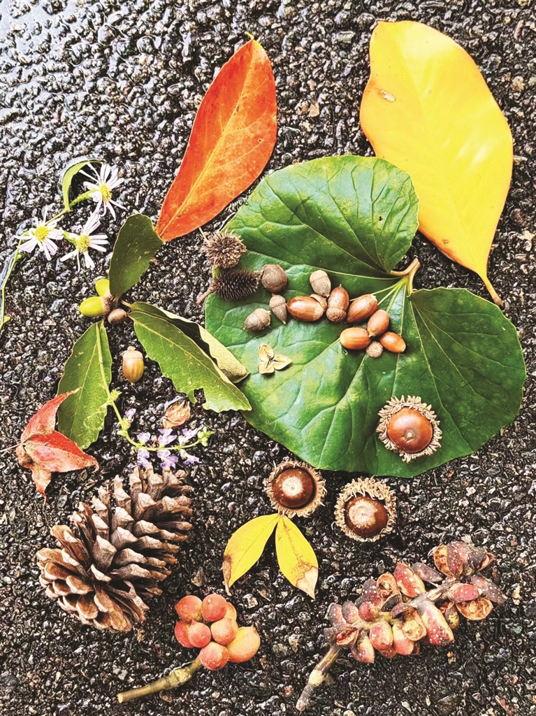 其实,落在地上的,几乎都能成为你的宝贝。无论是各式各样的松果浆果、五彩斑斓的落叶、形态各异的树枝,还是尽可能保持完整的落花……记住这七字箴言:低头,弯腰,睁大眼。