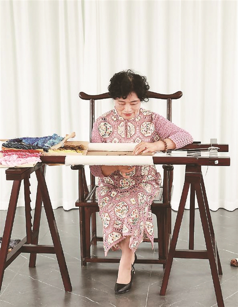 经过50多年的钻研,钱月芳掌握了全套顾绣工艺技能,熟练运用几十种针法和色彩搭配,还把自己的经验整理成册。