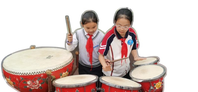 每周一下午4时,一到时间点,操场上就会准时传来锣鼓声,这是锣鼓社团约定俗成的规矩,先到的小朋友先把锣鼓敲起来,其他成员听到锣鼓声就知道该来上课了。