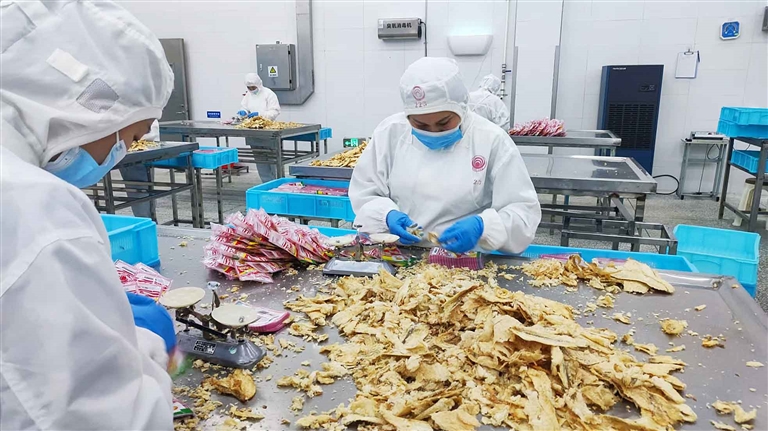 在中国水产舟山海洋渔业制品有限公司的生产车间里,工人们正忙着生产加工熟鱼片、鱿鱼丝等拳头产品。今年,该公司还将作为2024浙江农业博览会舟山馆的主展企业,展示展销四十余款干冻品。