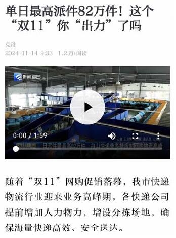 自10月21日至11月13日,我市“双11”期间快递行业派件量达1520万件,比去年同期增加200万件,其中日派件量最高达到82万件(据《舟山日报》11月14日报道)。内需旺盛、消费踊跃固然可喜,但凑到一起集中释放却也喜中有忧。