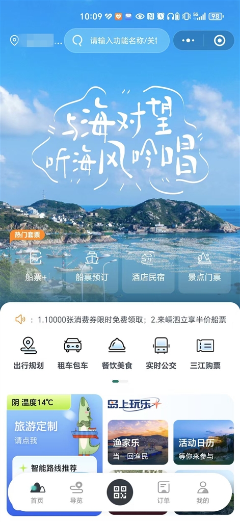 眼下,嵊泗正开展旅游惠民季,将在该小程序发放1万张消费券,助力民宿度过秋冬淡季。