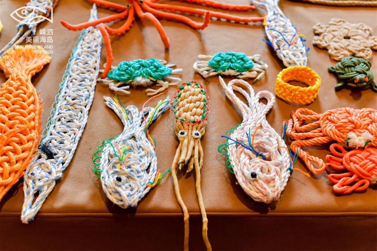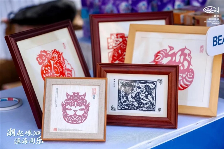 这些非遗还融入了旅游产品之中。嵊泗渔民画、嵊泗海洋剪纸、嵊泗渔绳结等已经华丽转身为可爱的文旅好物。