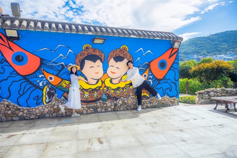 当你漫步嵊泗聆听嵊泗渔歌的嘹亮与欢快之际,还会在明媚山海之中发现一抹抹绚烂色彩。那就是嵊泗渔民画,它在嵊泗非遗中颇为耀眼。嵊泗渔民画家把对大海与小岛的情感,都融入了画里。想要看绚烂的嵊泗渔民壁画,推荐去田岙村看看。
