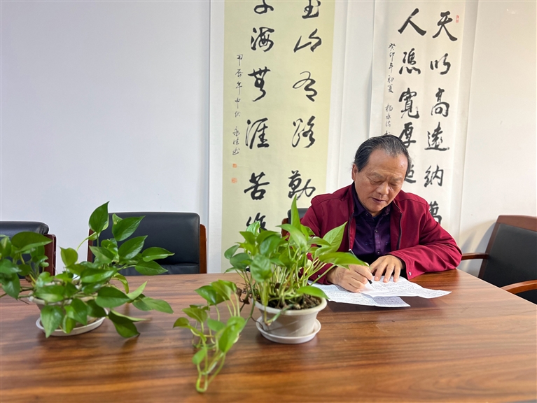 见到杨永法时,他正忙着准备普陀老年大学2025年的春节晚会主持词。作为一名退休老人,他的晚年生活非常的丰富:排演节目、讲“大道”、创写小锣书……