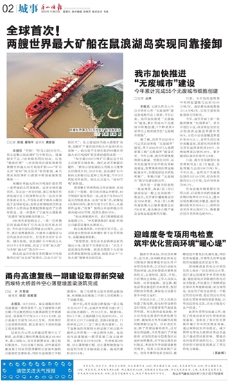 两艘世界最大矿船在鼠浪湖岛实现同靠接卸