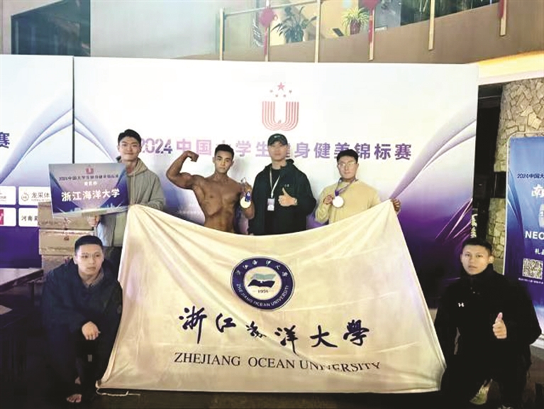今年9月底,中国大学生健身健美锦标赛落下帷幕,浙江海洋大学健身健美队取得新突破,共斩获70kg组男子健美冠军、75kg组男子健美亚军等多项荣誉,创造了全国赛迄今为止的最好成绩。