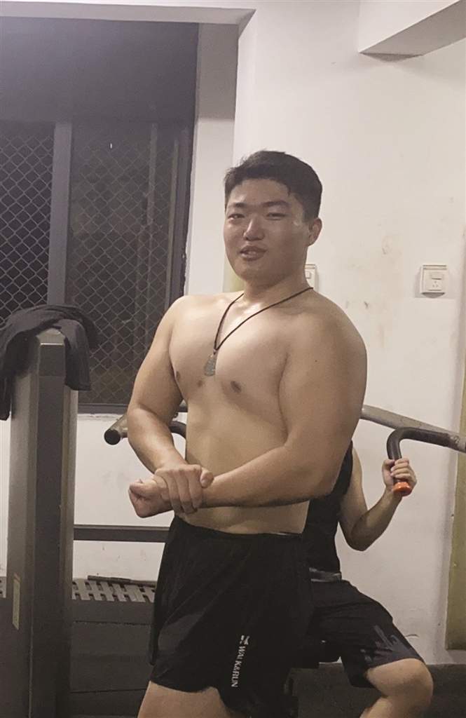 说起自己加入健身健美队的起因,郑南波表示是因为他一直热爱健身,考入浙江海洋大学后,同学看他对健身痴迷,就推荐他加入学校健身健美队。有健身基础、身材好,还热爱健身,去年,郑南波顺利入选。
