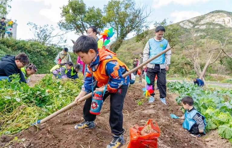 近日,“和美庭院丰收季 海上农庄共富游”主题活动在嵊泗菜园镇小关岙村举行。小朋友们手握锄头,轻轻刨开土壤,一个个饱满的红薯映入眼帘,收获的喜悦油然而生。当天,不少村民还带着红薯、扁豆、土鸡蛋等优质本地土特产来集中售卖。下一步,菜园镇将结合各村特点以及共富工坊品牌,大力发展有人气、有活力、有效益的乡村经济。