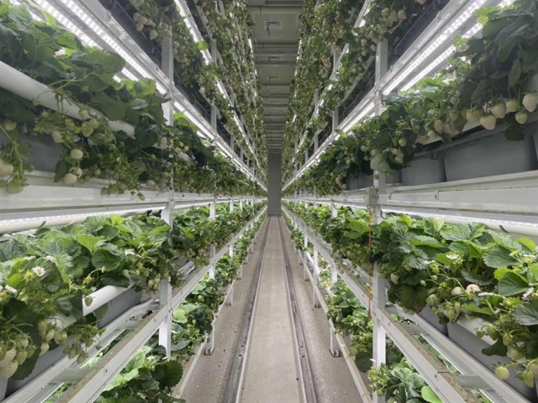 “草莓数字植物工厂”迎来丰收季