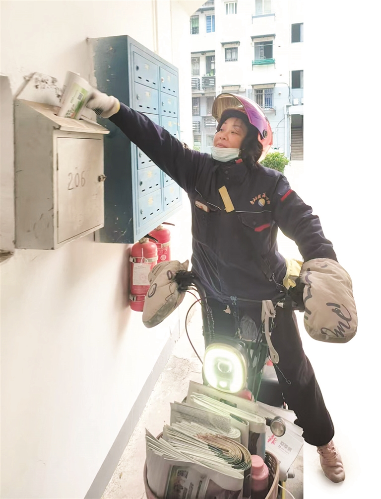 “不能将报纸按时送到订户手上,我会非常自责,所以交通工具一旦出点问题,我都会及时维修、更换,虽然换代步车也花了不少钱,但车不出状况最重要。”罗晓明走进一栋居民楼,将报纸塞进一个报箱里。