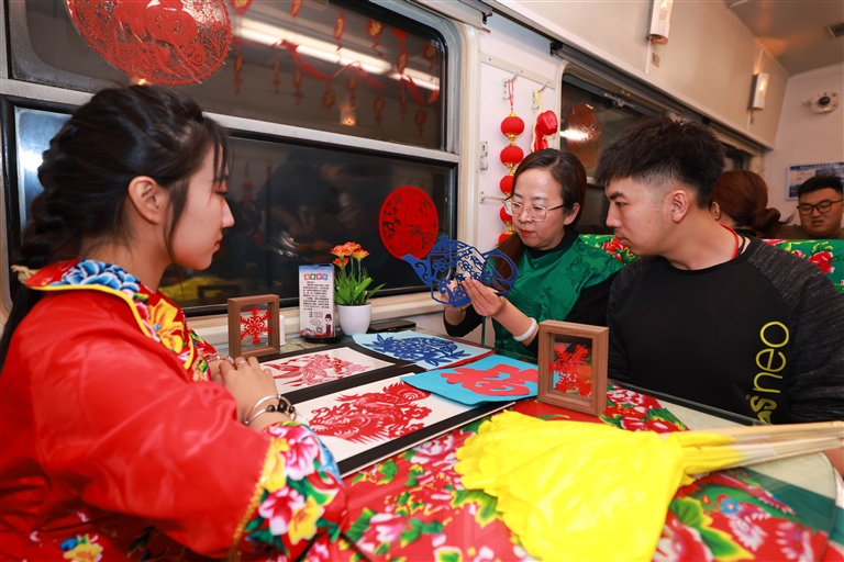 11月25日晚,被誉为“雪国列车”的K7041次列车驶出哈尔滨,开往“神州北极”漠河。这是今年冬天黑龙江省开行的首趟东北民俗主题旅客列车。旅途中,车内挂窗花、贴福字、铺东北大花布,乘务员穿上东北大花袄,为旅客献上东北民俗演出。