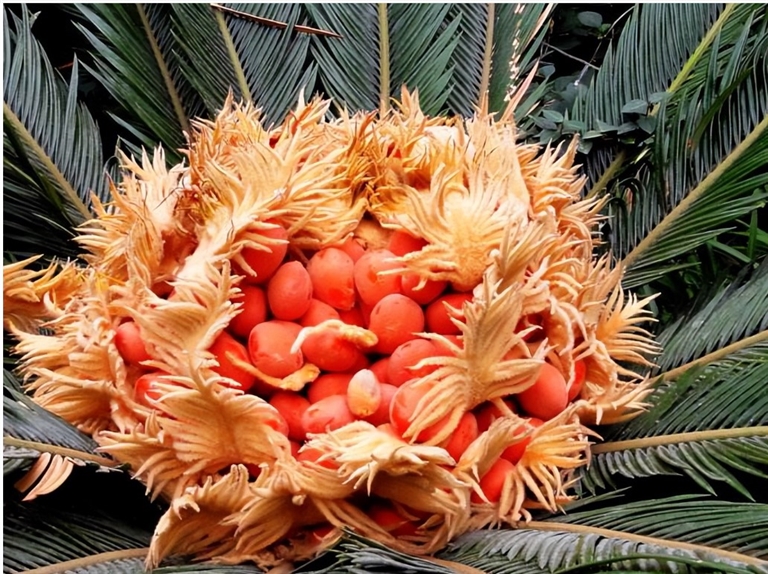 据了解,铁树果也被叫做“凤凰蛋”,果子呈红色,外皮上还有一些细细的绒毛,形状略像鹅卵石,有一股植物特有的清香。一般树龄在二三十年以上的铁树才可能结果,可见其珍稀程度。不少老人听闻铁树果是一味中药材,却不知不小心误食铁树果或致中毒。“铁树果外观类似板栗,看着人畜无害,但其实铁树果里有一种叫苏铁甙的有毒物质,食用后会产生一种神经毒素,轻则引起头晕、呕吐、腹痛等症状,重则导致神经麻痹、肌肉萎缩,甚至可能肝肾功能衰竭。”市妇儿医院皮肤科医生颜云蓉提醒道。