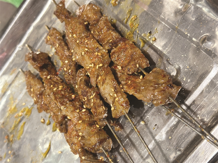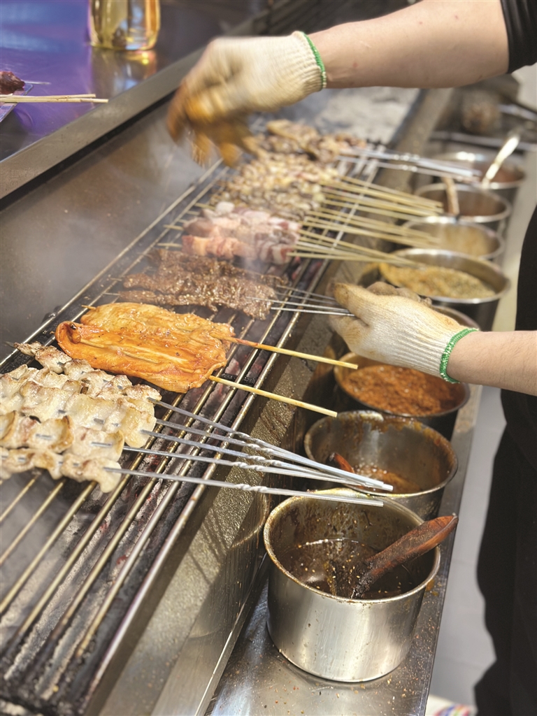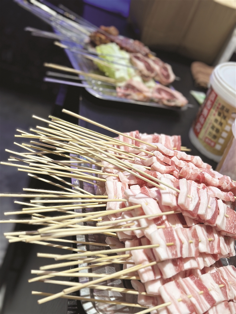 烧烤怎么样才好吃?肉要新鲜,现切现穿。都是在店里的视线可见之处,属于开店以后的保留节目。